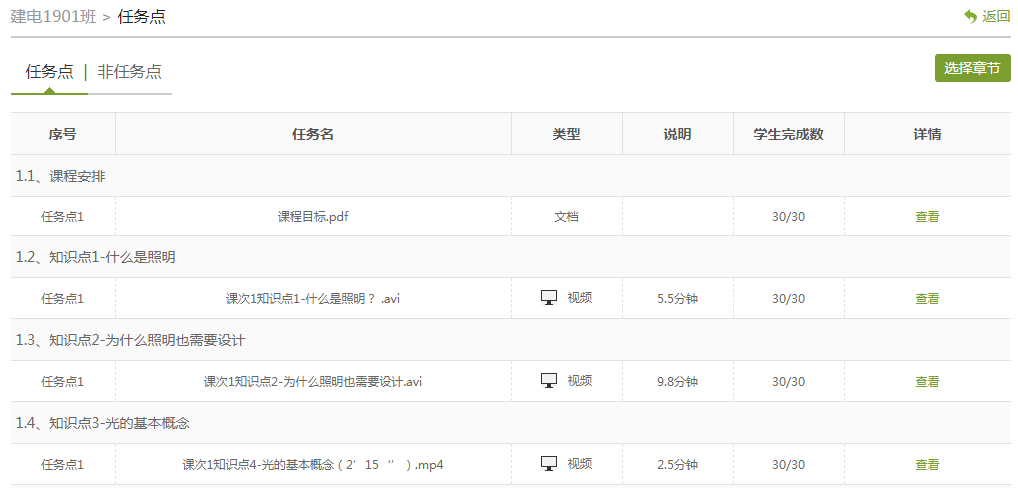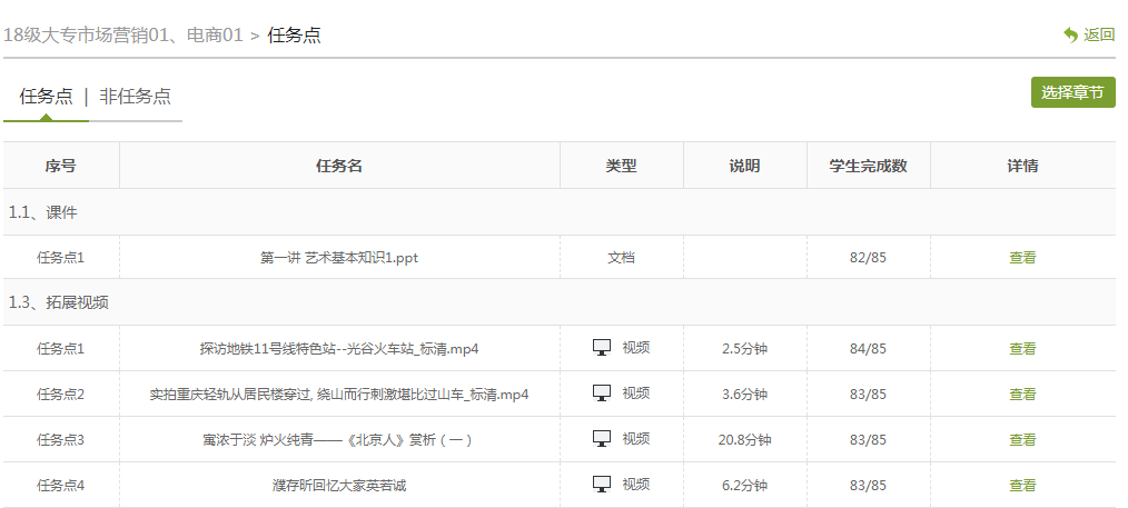 课程任务点完成情况统计: