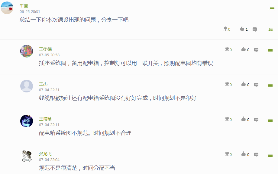 部分课程互动情况统计表