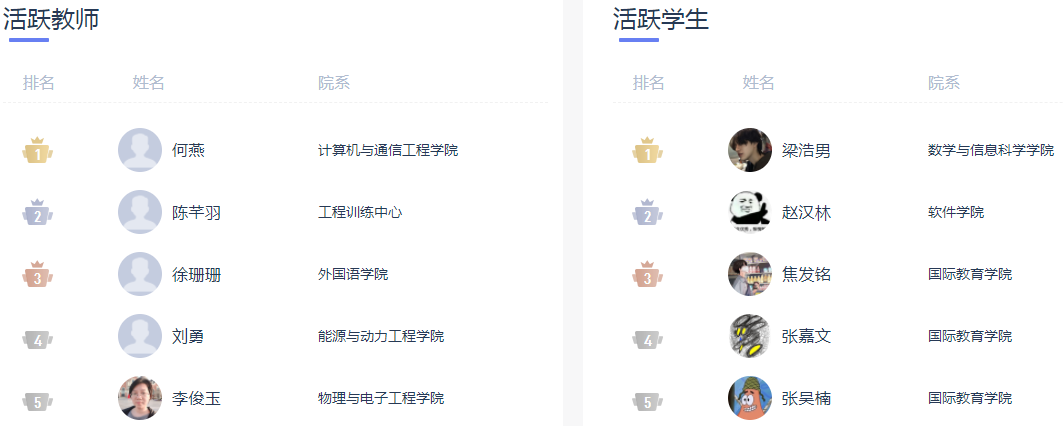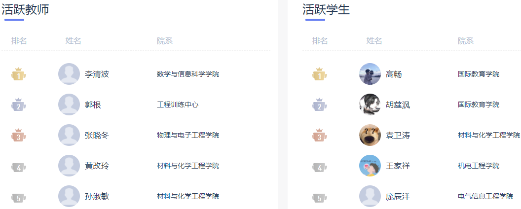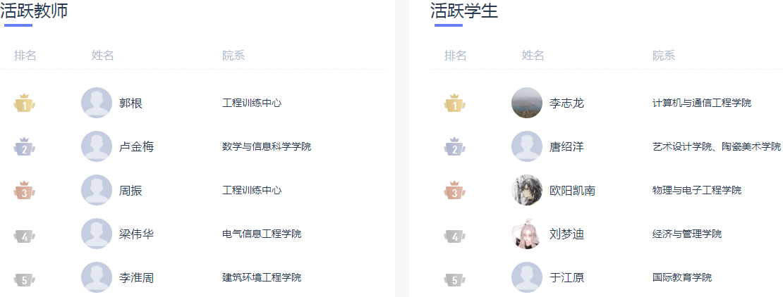 4、活跃教师/学生展示