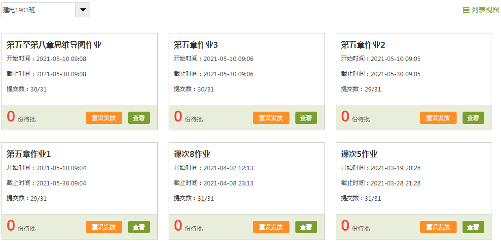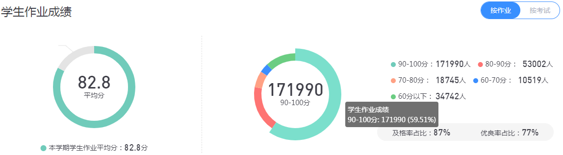 作业是检测学生对课程内容自我吸收的过程,教师可根据作业完成情况,通过平台提供的统计功能直接判断整体情况。作业中的客观题均由系统批阅,极大减少教师的批阅工作量,部分院系作业库的创建情况如图所示:
