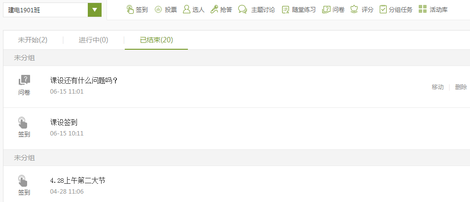 线上教学主要通过发送课堂活动来与学生进行教学互动,通过学生参与情况了解学生对知识的掌握程度。课堂活动类型有签到、测验、抢答、讨论等活动,使用互动较好的课程如下: