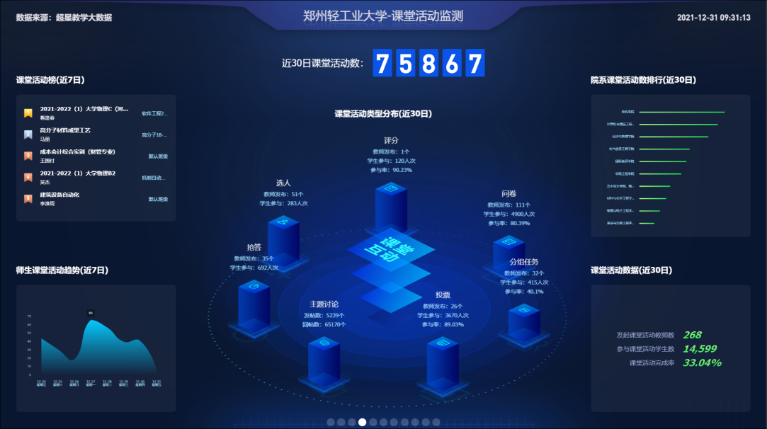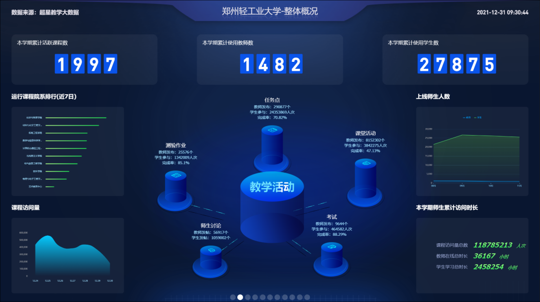 为了向您展示超星智慧教学系统平台在贵校2021秋季学期的线上教学运行情况,我们特别制作了这份《郑州轻工业大学2021秋季学期在线教学运行报告》供您参考。