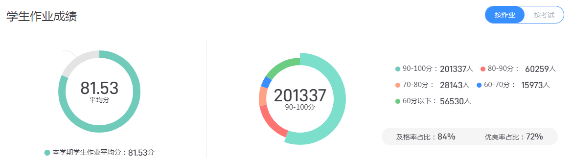 教师发布作业数7318,批阅作业数102286。