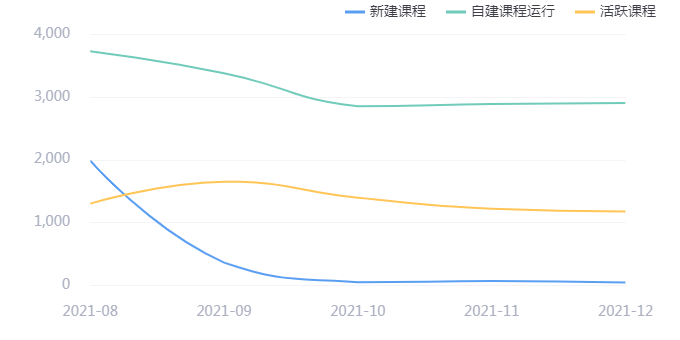 新建课程高峰期一般在8、9月份,这是保证教学正常开展,老师需提前备课的教学模式,从下图的趋势图可以看出本校老师们符合这一行为。