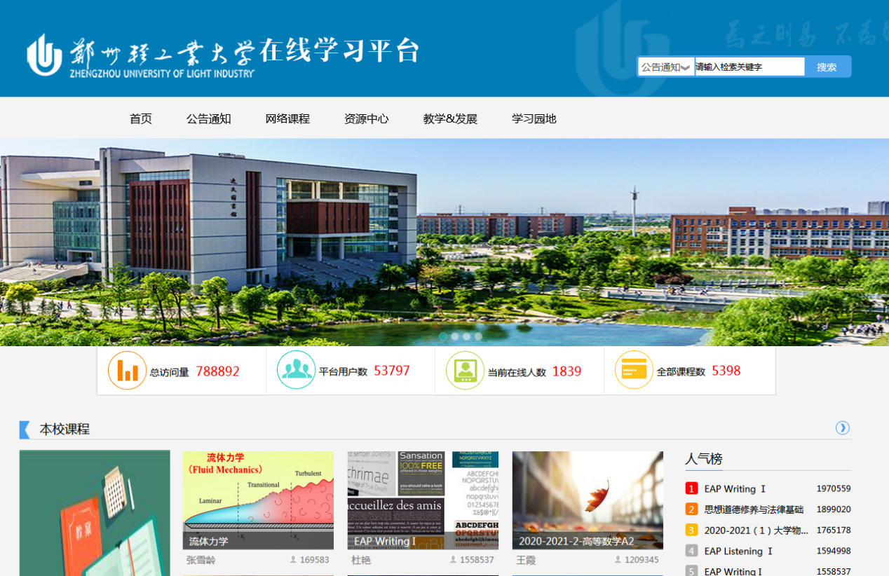 郑州轻工业大学网络教学平台PC端入口