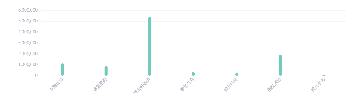 学生活动类型为参与课堂互动、提交作业、考试、参与讨论等,具体的分布情况如下: