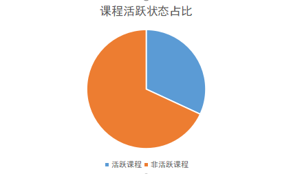 未激活课程为将课程表数据统一导入之后没有激活的课程;全校开设课程为课程表中根据课程性质适合开展混合式教学的课程。未激活课程占比为46%,其中未激活课程数为2052,全校开设课程总数为4397。