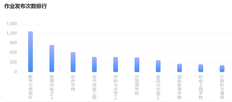 根据平台数据统计,发布作业最多的院系为数字与信息科、物理与电子工,贵校发布作业数量排名前10的院系情况如下: