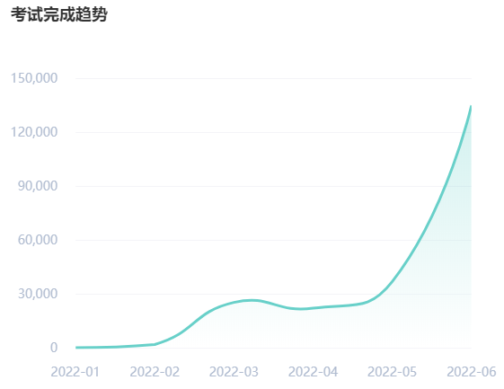 贵校6月进入考试高峰期,在6月累计完成考试135023人次,贵校考试完成趋势如下: