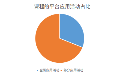 课程中有部分课程只设置任务点,上传课程资源;有些课程上传资源后,只利用了发布作业功能。应用平台部分功能课程占比为69%,其中应用平台部分功能课程数为1037,平台活跃课程数为1503。