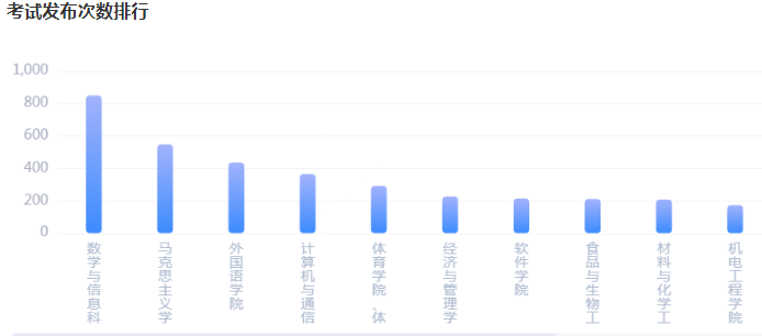 根据平台数据统计,发布考试最多的院系为数学与信息科学学院、马克思主义学院,贵校发布考试数量排名前10的院系情况如下: