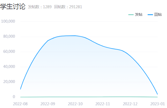 学生发帖数1289,学生回帖数291281。学生互动讨论趋势如下: