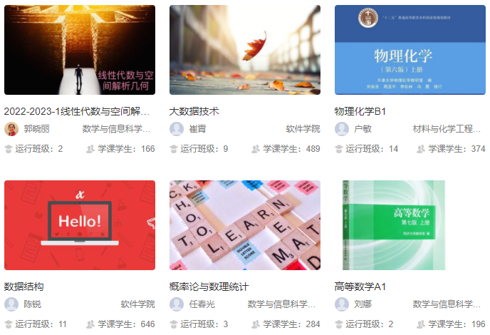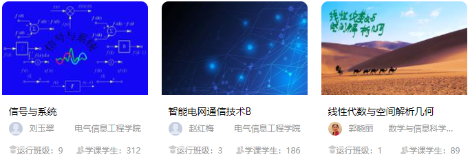 在课程运行过程中,平台根据每天运行的课程,将课程内有学生且访问量大于等于10的课程标记为活跃课程。活跃课程是判断贵校本学期课程持续开展教学的重要指标,贵校本学期活跃课程数量为2018门。下图为部分活跃课程展示: