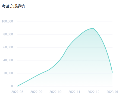 贵校在12月进入考试高峰期,在12月累计完成考试89612人次,贵校考试完成趋势如下: