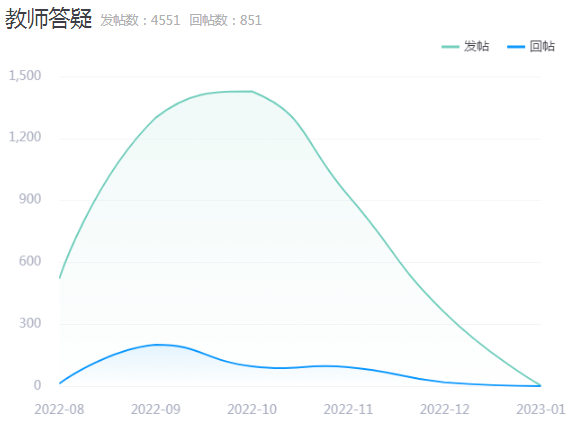 教师发帖数4551,教师回帖数851。教师互动讨论趋势如下: