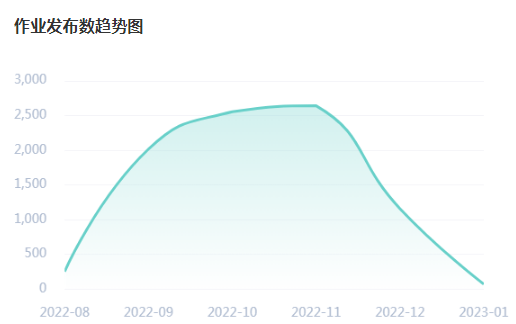 教师发布作业数8677,批阅作业数132294。本学期发布趋势图如下: