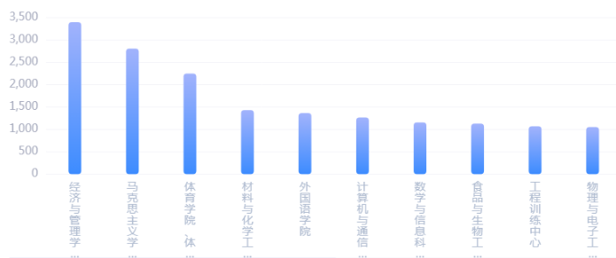 根据平台数据统计,发布课堂活动最多的院系为经济与管理学院、马克思主义学院,贵校发布课堂活动数量排名前10的院系情况如下: