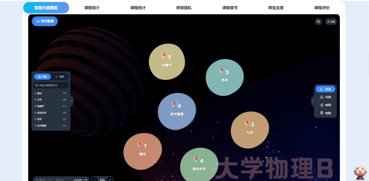 依托知识图谱重构课程内容体系,实现三大核心价值落地:一是知识结构可视化,将碎片化知识点串联成体系化图谱,降低学习与备课难度;二是个性化资源推送,基于学生知识掌握情况精准推送适配资源板;三是教学体系动态调整与学习路径自主规划,教师可根据学情反馈优化知识图谱结构,学生可结合自身需求自主规划学习顺序,适配差异化教学与个性化学习需求,目前已有多个院系在专业课程中试点应用,备课效率与学习效果显著提升。