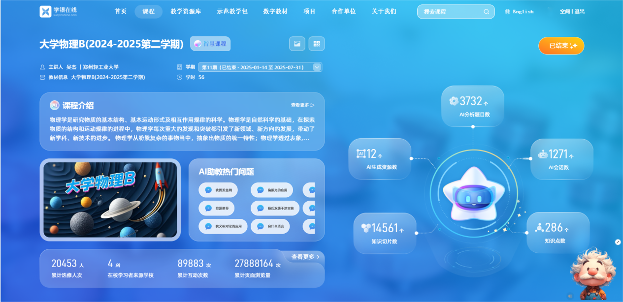 在2025秋季教学期间,超星泛雅智慧课程平台运行稳定有序,课程建设、师生应用、资源沉淀等核心指标表现突出,各维度数据具体罗列及如下: